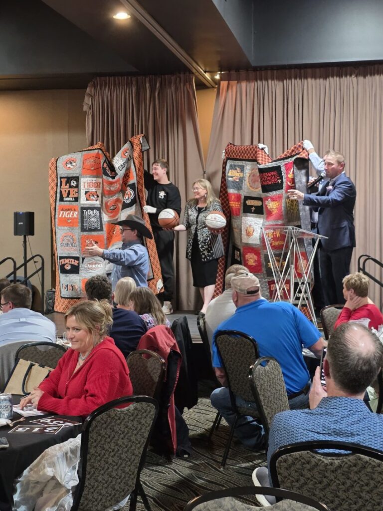 Bidding went high for the choice of the Carroll High or Kuemper Catholic t-shirt quilts, both made and donated by Leann Baumhover of Carroll.